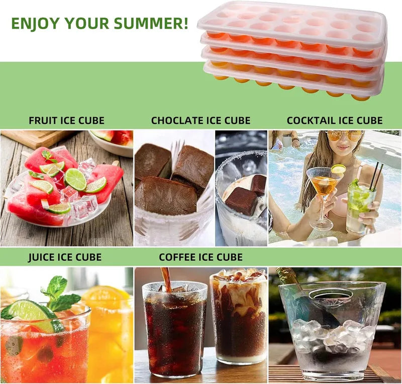 OyzekX Ice Cube Trays Silicone Mold — Made from 100% BPA-free, food-grade silicone and PP material, safe and reusable for adults or baby food. Each grid is separate at the bottom, making it easy to release ice balls with a simple twist. The 2-pack creates 42 ice balls at once. Flexible, non-stick design ensures perfect shapes every time. Stackable with removable lids to block odors, prevent leaks, and save freezer space. Durable, crack-resistant, and dishwasher-safe. Withstand -4℉~212℉. Perfect for making pure ice, fruit, yogurt, or juice cubes for whiskey, cocktails, and more.