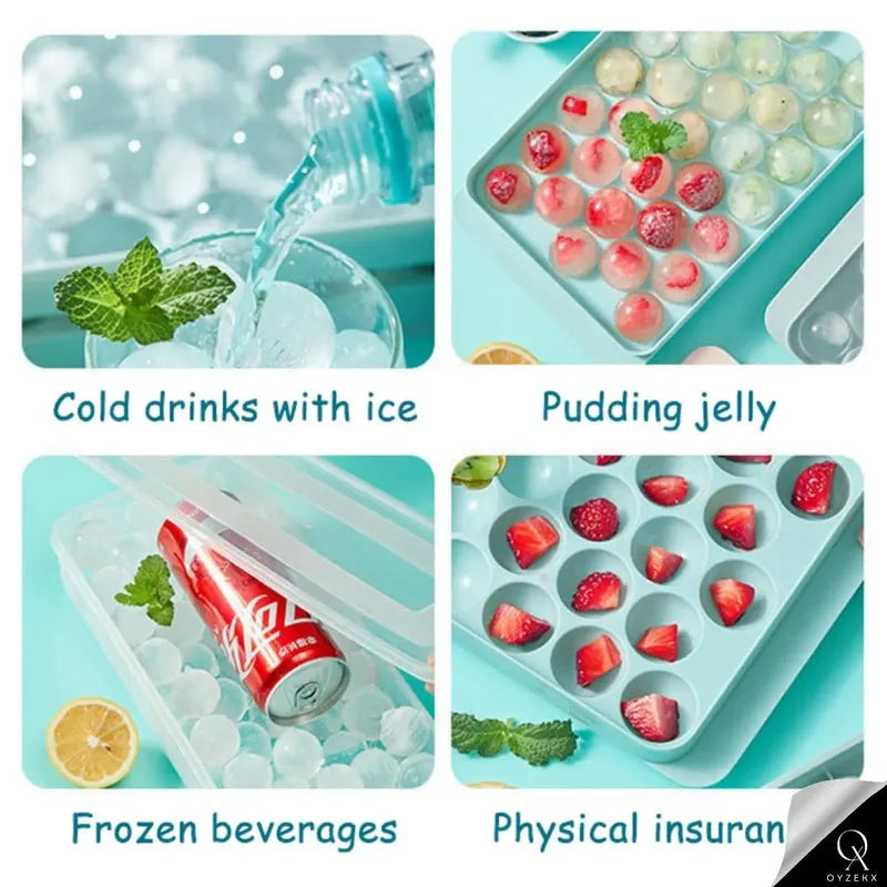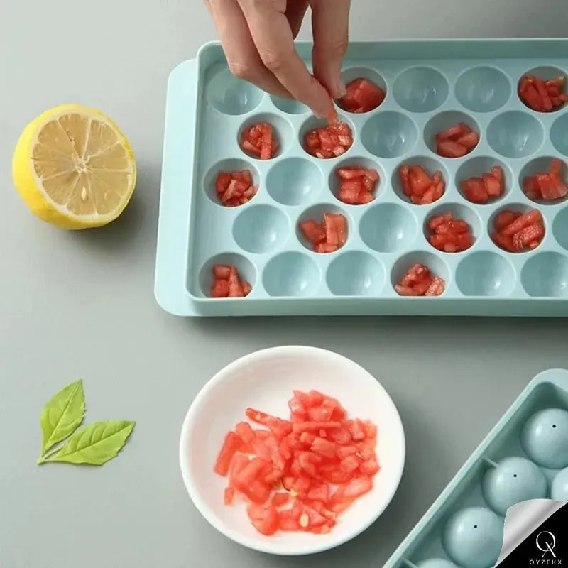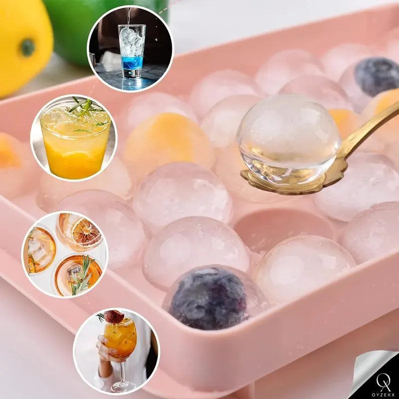 Features separate grid bottoms for effortless ice removal with a simple twist. Made of strong, durable plastic, it creates 33 perfect, slow-melting ice balls that release easily without cracking.OyzekX Ice Ball Maker Tray Let it sit for a minute after removing from the freezer for smoother release. Microwave- and dishwasher-safe, reusable, and easy to clean. Each 4 x 4.5 cm sphere is ideal for cocktails, coffee, or water. Also great for freezing jelly, chocolate, or soap. Beautifully packaged, it makes a stylish, practical gift for any occasion or home bar.