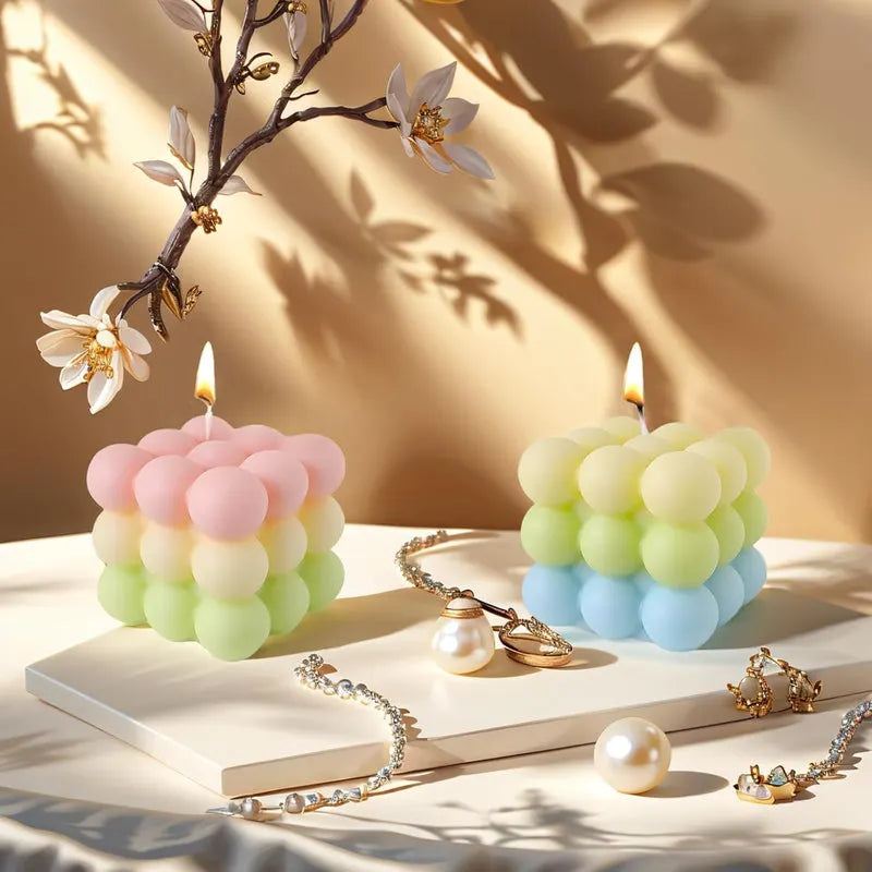 The Premium Bubble Cube Candle is handcrafted from natural soy wax with a pure cotton wick, offering a clean, eco-friendly, and long-lasting burn. Its elegant cube design adds a modern, artistic touch to any room, making it both decorative and soothing. When lit, it releases a gentle floral fragrance that promotes relaxation, relieves fatigue, and creates a calming ambiance. Perfect for home décor, meditation, or romantic settings, this stylish candle also makes a thoughtful gift for birthdays, weddings, or holidays. A minimalist yet luxurious accent that brings warmth, beauty, and serenity to any space.
