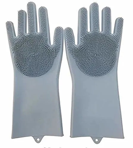 The silicone scrubber cleaning gloves are a 2-in-1 kitchen essential combining gloves and scrubbers in one. The built-in silicone bristles on the palms act like a brush, cleaning dishes effectively without the need for extra tools. They save time, maintain hygiene, and bring convenience to your home.Gloves Magic Silicone Dish Washing Gloves Easy to use and clean, just rinse or place in the dishwasher. Dense and soft bristles create rich foam and prevent surface damage. Designed with non-slip ergonomic grip, these waterproof, pull-on gloves fit most adults comfortably for all-around cleaning tasks.