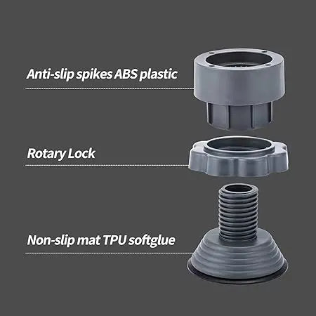 Our anti-slip and shock-absorbing washing machine bracket features a stylish gray design made from premium resin fiber plastic and durable TPU hard rubber. These high-performance materials offer excellent shock absorption, stability, and long-lasting durability. Washing Machine Vibration Pads, Floor Trays, Refrigerator Stand bracket effectively prevents moisture buildup and rust beneath appliances, ensuring extended life and cleaner surroundings. Its raised structure promotes proper ventilation under the washing machine or refrigerator, making cleaning easier and maintaining hygiene. Ideal for protecting floors, reducing vibration, and keeping your appliances steady, secure, and efficient during use.